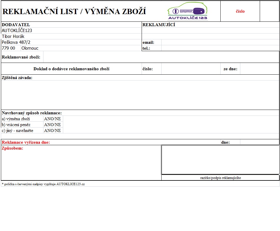 Reklamační list ve formátě jpg si můžete stáhnout kliknutím na obrázek reklamačního listu níže, poté ručně vyplnit.